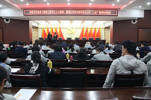 公司消息 ?。保霸拢玻等障挛?,公司在大會(huì)議室舉行了黨員干部職工學(xué)習(xí)十九大精神、集團(tuán)公司及公司2018年“三會(huì)”精神知識(shí)競(jìng)答活動(dòng)。公司黨委書(shū)記、董事長(zhǎng)曾祥志,黨委副書(shū)記、紀(jì)委書(shū)記曹小毛及相關(guān)單位負(fù)責(zé)人、各基層分會(huì)答題選手共90余人,來(lái)到了活動(dòng)現(xiàn)場(chǎng)。