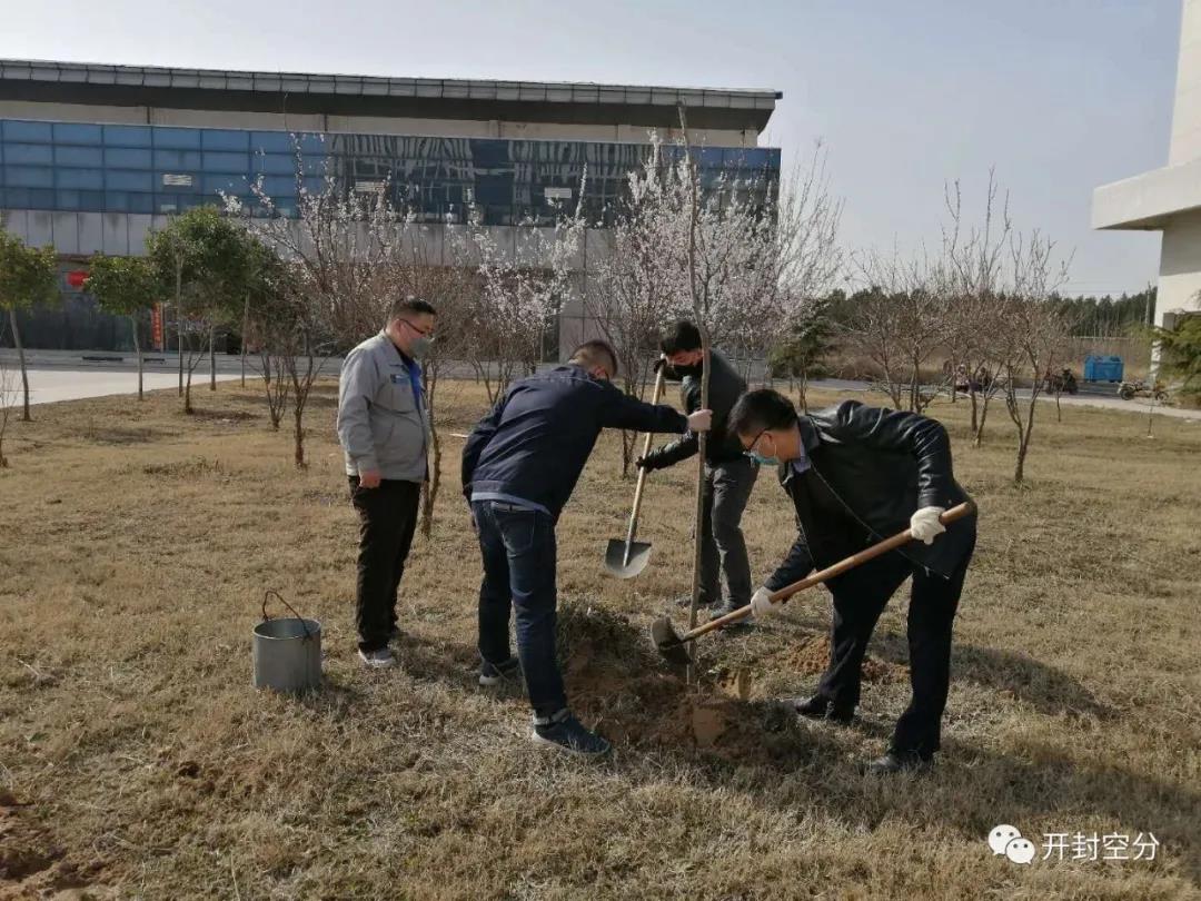 今年的植樹節(jié)和以往有些不同,目前依然是疫情防控的關鍵期,開封空分統(tǒng)籌兼顧,在確保人員安全的同時,搶抓春季植樹的黃金時節(jié)。3月12日,陽光明媚,復工的職工們全部佩戴口罩,拿起鐵锨,提上水桶,開始了新一年的植樹活動。