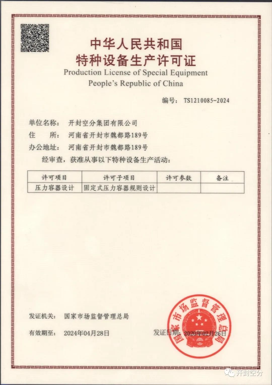 近日,公司正式取得固定式壓力容器規(guī)則設計許可證!
